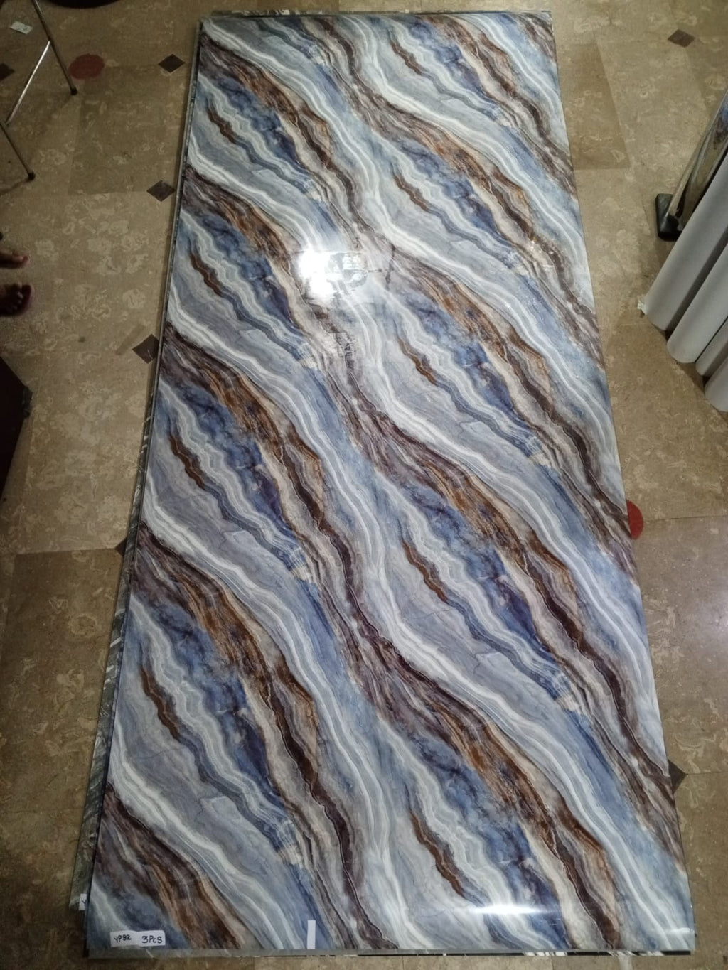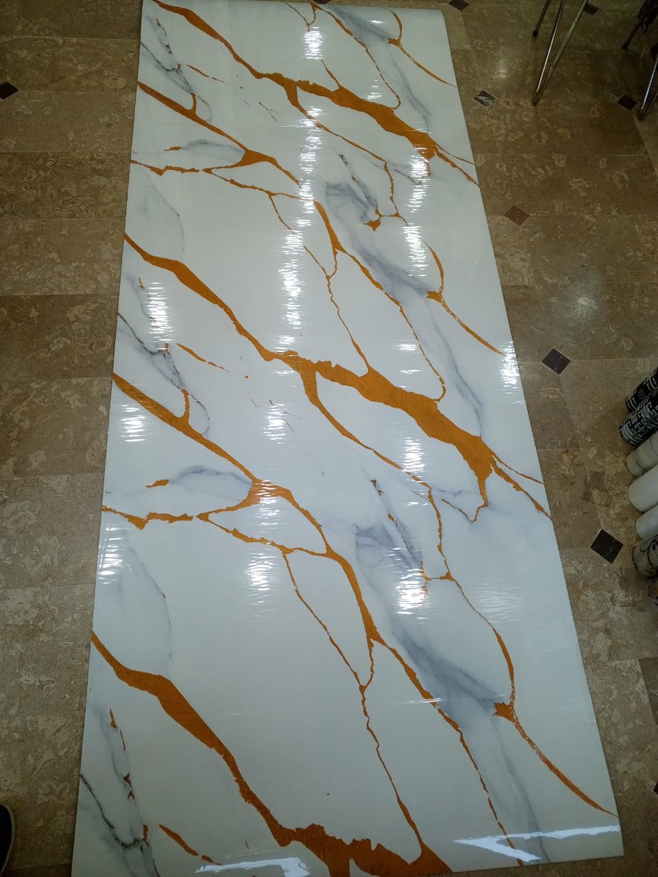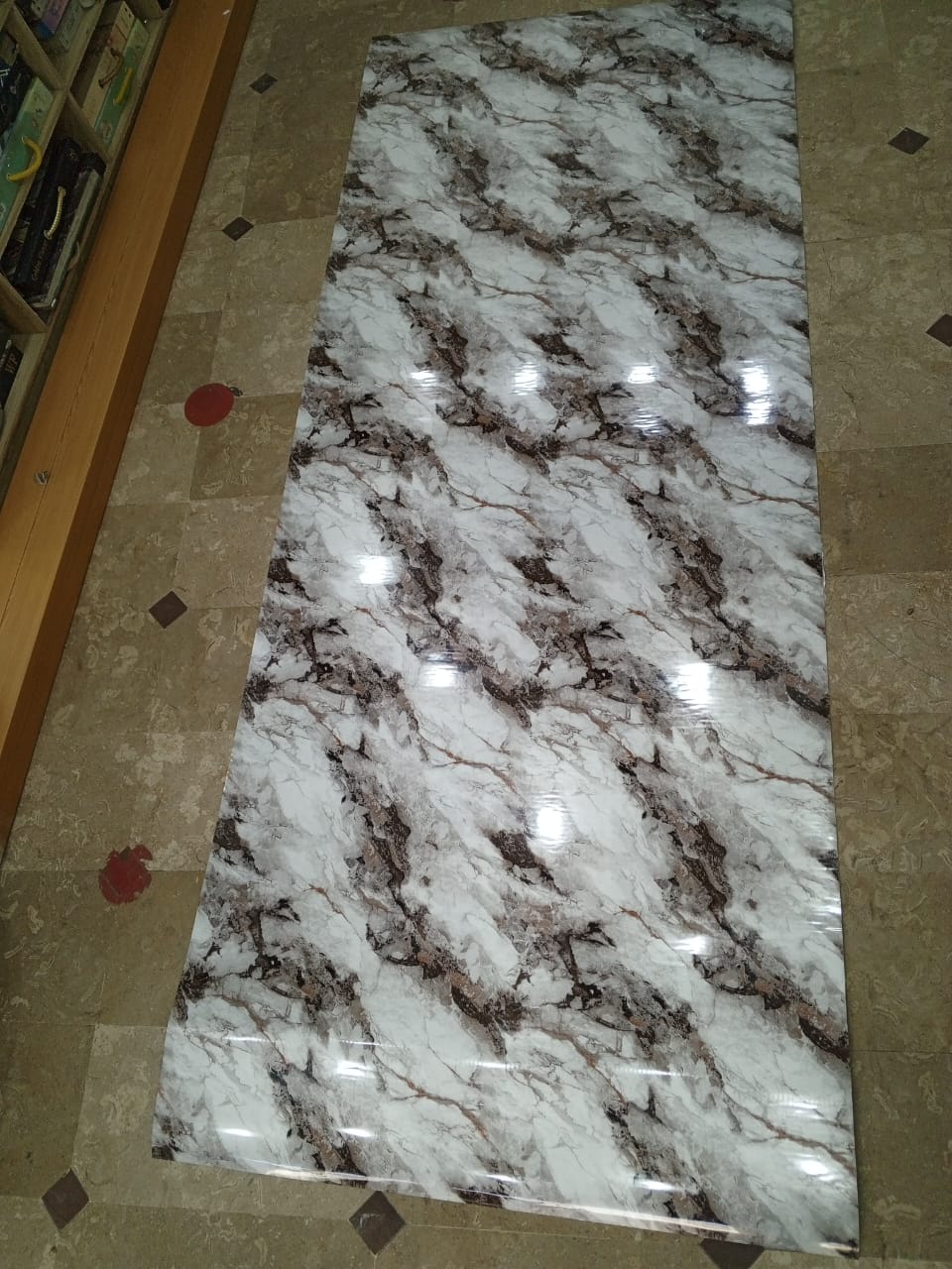 4 feet width x 10 feet length hai sheet ki , 3mm thickness hai , self adhesive hai kisi alag say adhesive ki zaroorat nahi hai , aap khud be issay instal kr sakte hein, cash on delivery ki facility kay sath puray pakistan mein kahen be aaap order kr sakte hein