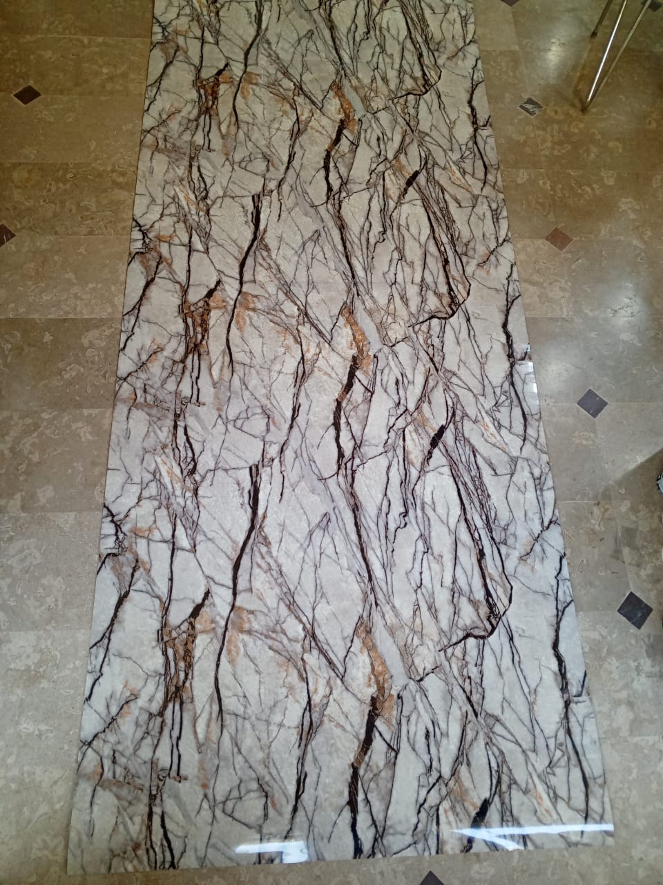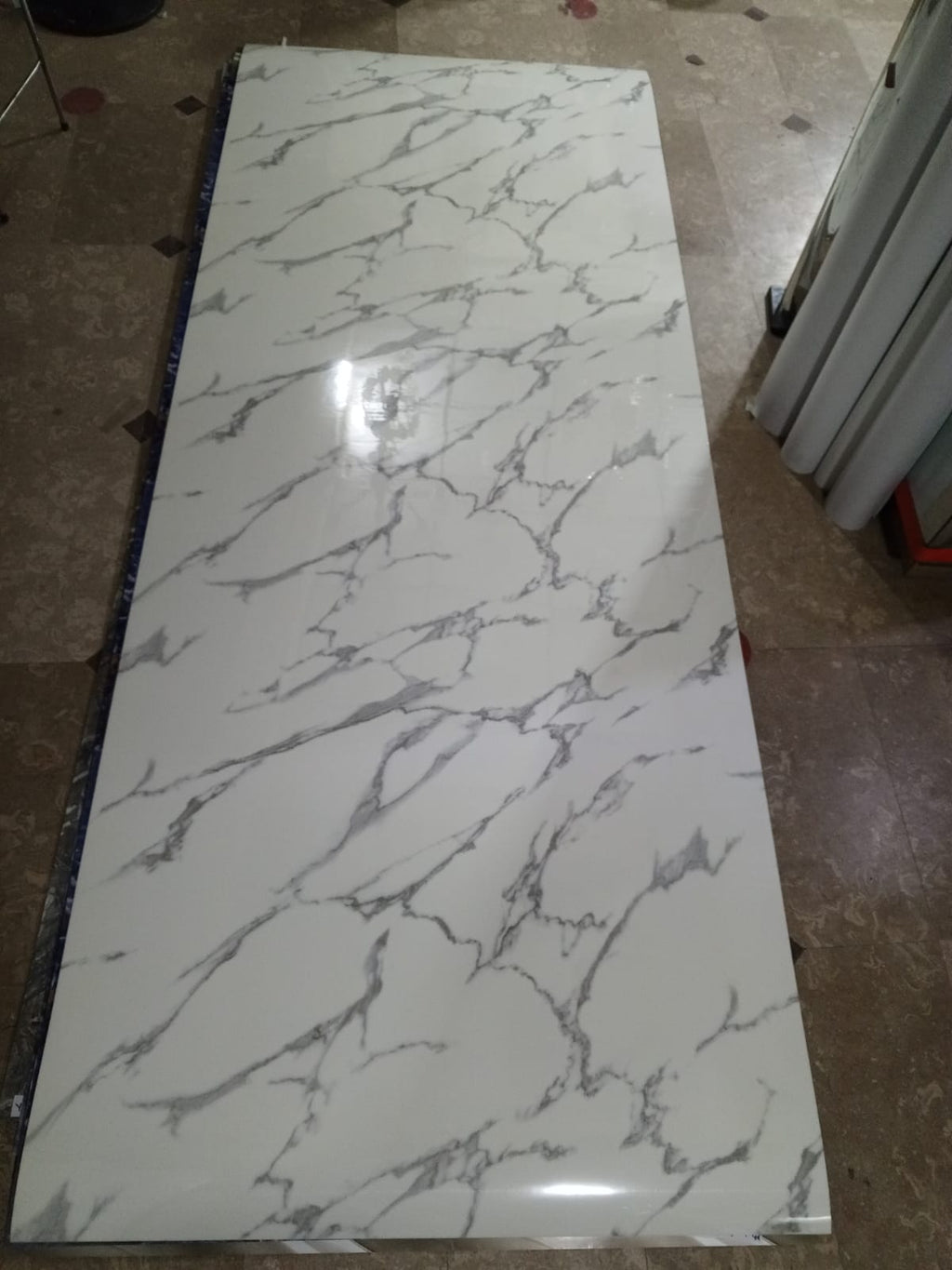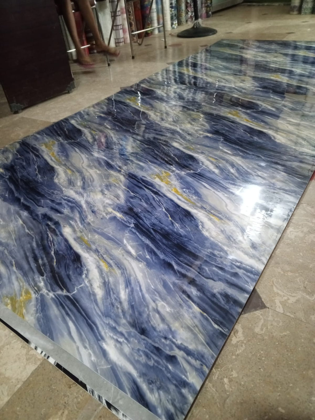 4 feet width x 10 feet length hai sheet ki , 3mm thickness hai , self adhesive hai kisi alag say adhesive ki zaroorat nahi hai , aap khud be issay instal kr sakte hein, cash on delivery ki facility kay sath puray pakistan mein kahen be aaap order kr sakte hein
