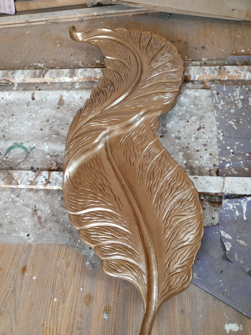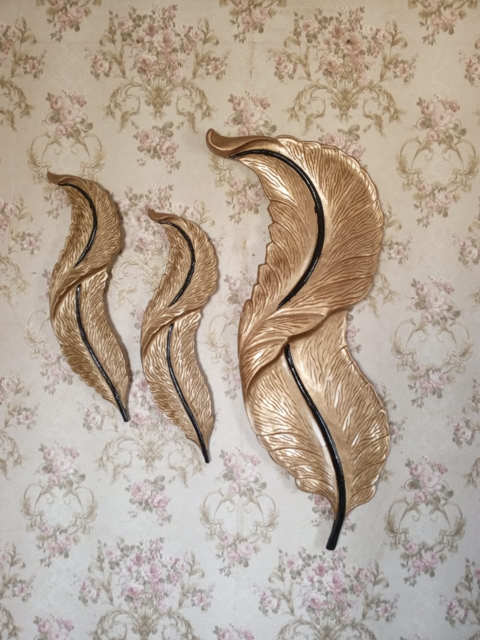 fiber ka bana huwa feather hai wall decor kay leye use hota hai, iski back side per light be use hoti hai , hum aapko pata bina color kay dein gay color aap khud be kr sakte hein deco paint be kr sakte hein , 4 sizes hein is mein 18 inch lamba / 30 inch / 48 inch / 66 inch lenght